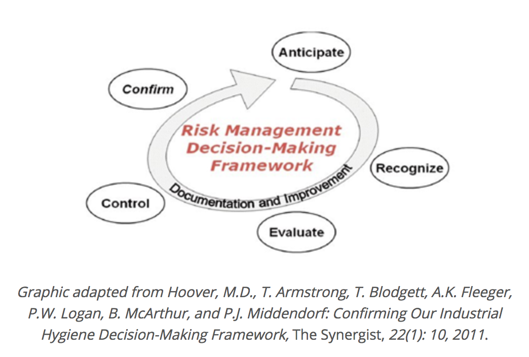 Here at Affygility Solutions we often get asked, "How do a I develop a comprehensive potent compound safety program? Well, the secret to developing a comprehensive program is no different than establishing any other management system program, whether it be for quality, occupational safety, or for environmental performance. For the purpose of this article, we will follow the risk management decision making framework (hereafter, known as the "framework") used by the American Industrial Hygiene Association (AIHA). This framework is show in the following graphic: